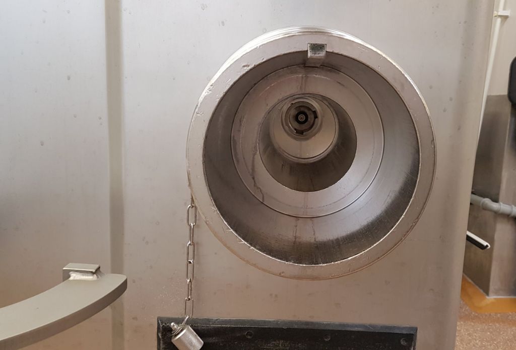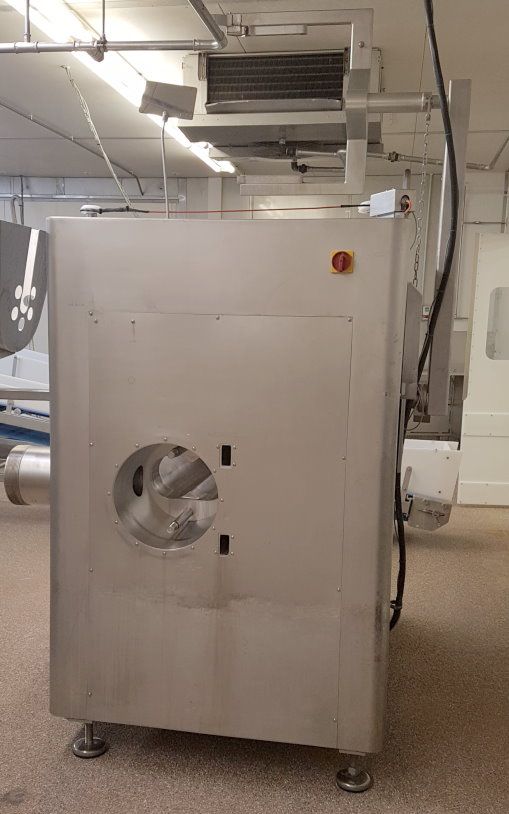W koszu zainstalowane mieszadło zapobiegające zawieszaniu się produktu.Wilko-mieszałka przeznaczona do mięsa świeżego.